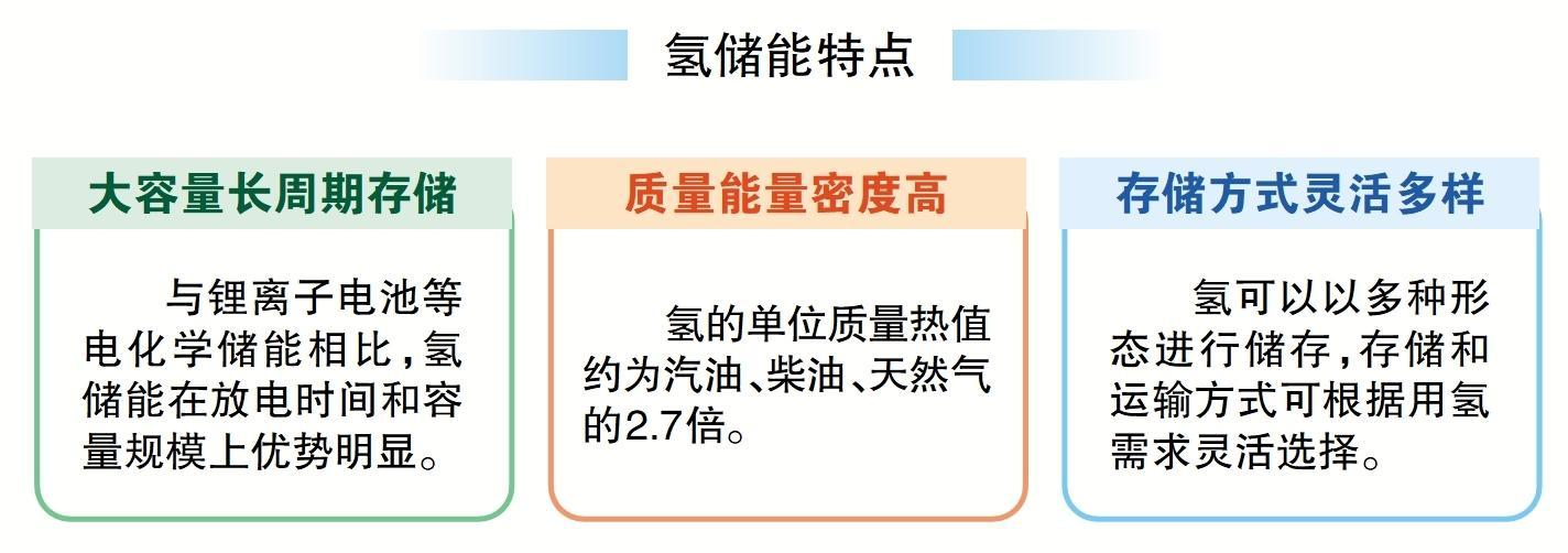 在新能源裝機占比高、系統調峰運行壓力大的地區,氫儲能通過“電—氫—電”雙向發揮作用,滿足用電負荷需求,起到日內調節作用。應對電源—負荷季節性差異、極端天氣帶來的保供壓力,氫儲能可以跨季節、長周期儲能,較電化學儲能更具有經濟性。