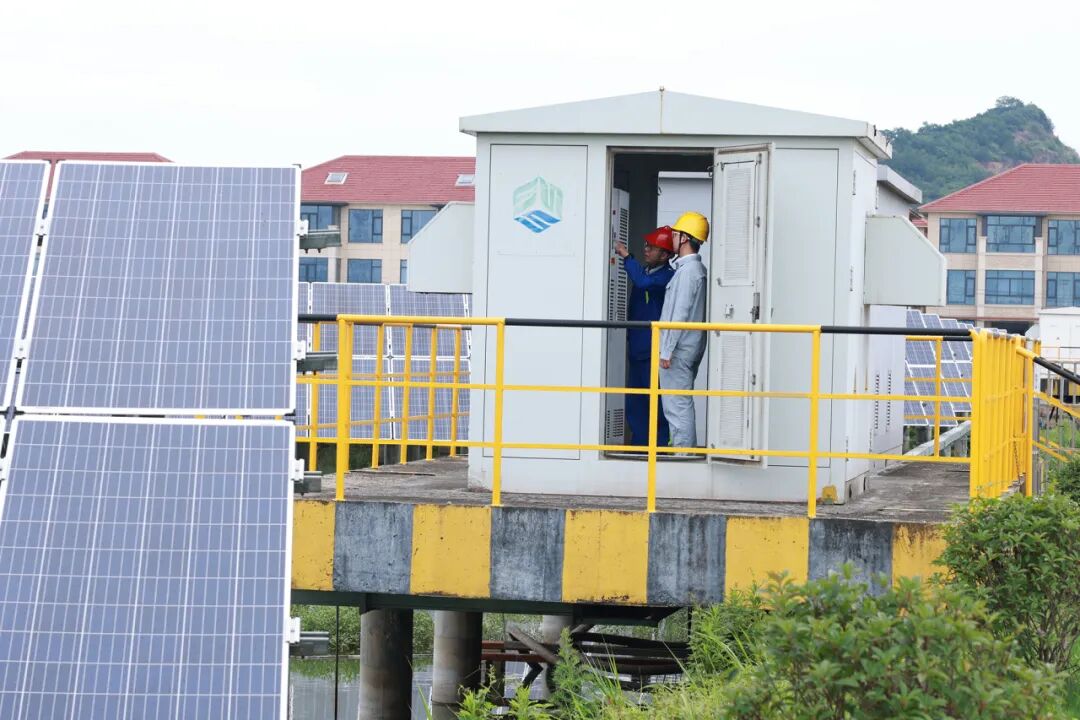 國網浙江電科院技術人員在湖州中節光伏電站進行