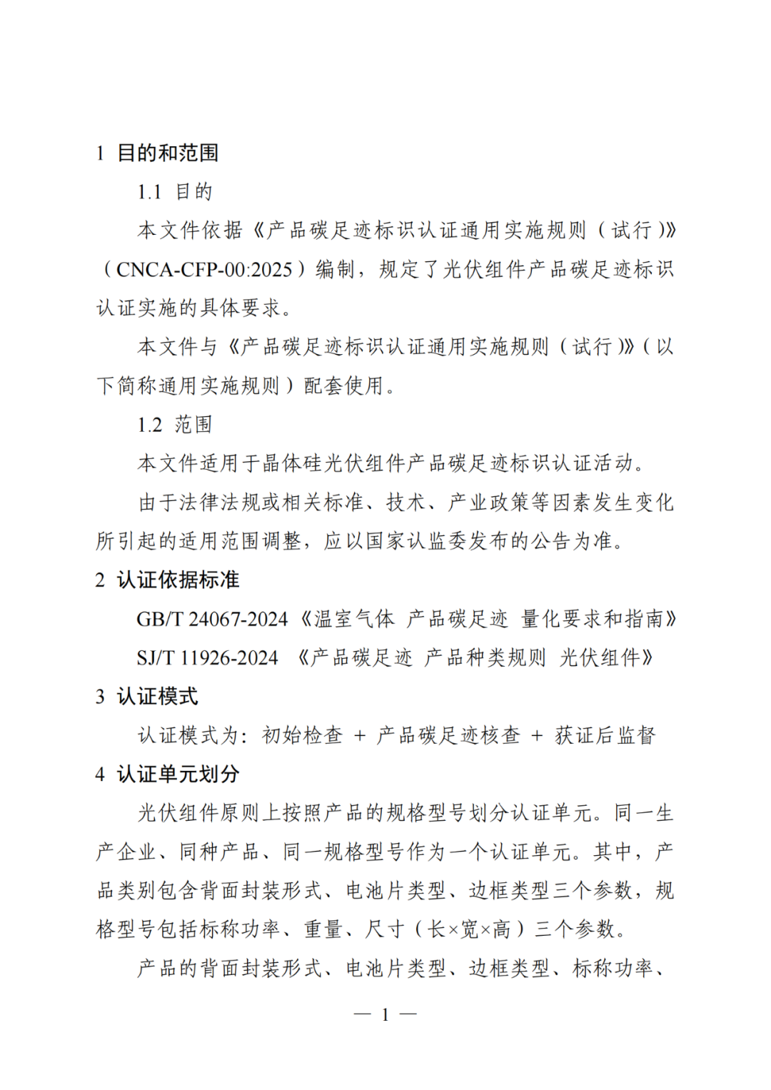 第一批產品碳足跡標識認證專用實施規則光伏組件(試行)印發