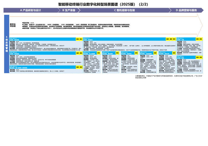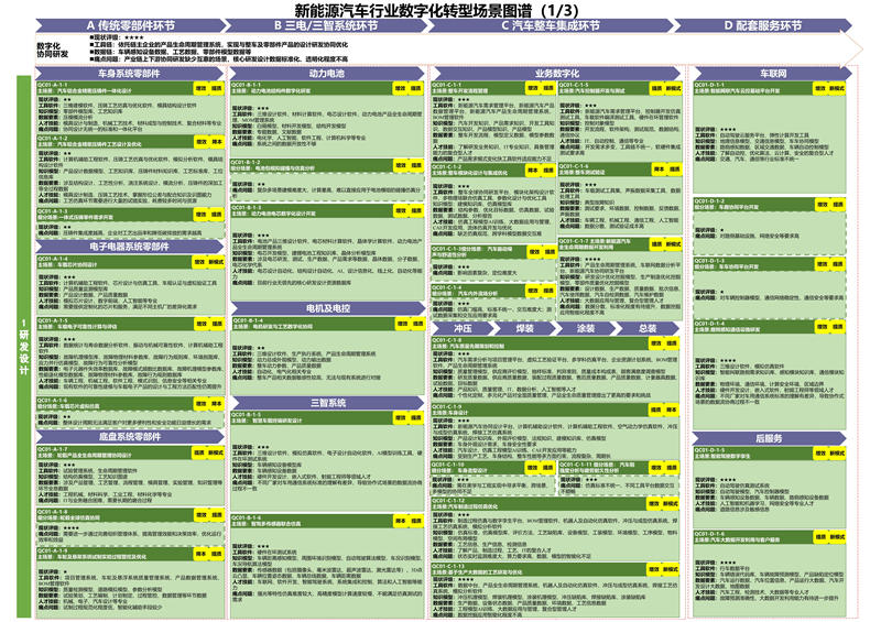鋰電池制造過程既包含流程制造又包含離散制造(合漿到制片是流程,組裝后是離散),生產工藝復雜(既有物理反應也有化學反應),是數字化轉型流程復雜、場景豐富、帶動效應強的代表性行業。但國內鋰電池行業生產數字化水平不高,面臨管理水平落后、生產能力不均衡、動態信息不共享等問題。以“一圖四清單”推進鋰電池行業數字化轉型,可以幫助相關企業明確轉型重點、找準轉型路徑、降低轉型投入,分步實現數字化、網絡化、智能化轉型。