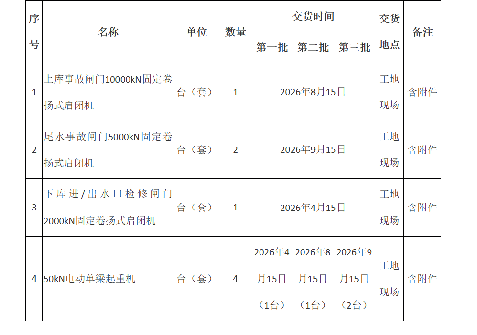 電站啟閉設(shè)備制造招標公告