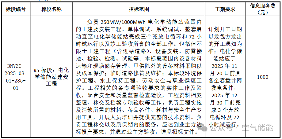 3. 招標范圍:負責 250MW/1000MWh 電化學儲能站范圍內的土建及安裝工程、單體調試、系統調試、整套啟動直至電化學儲能站完成三個充放電循環和 72 小時試運行以及竣工驗收所含的全部工作。