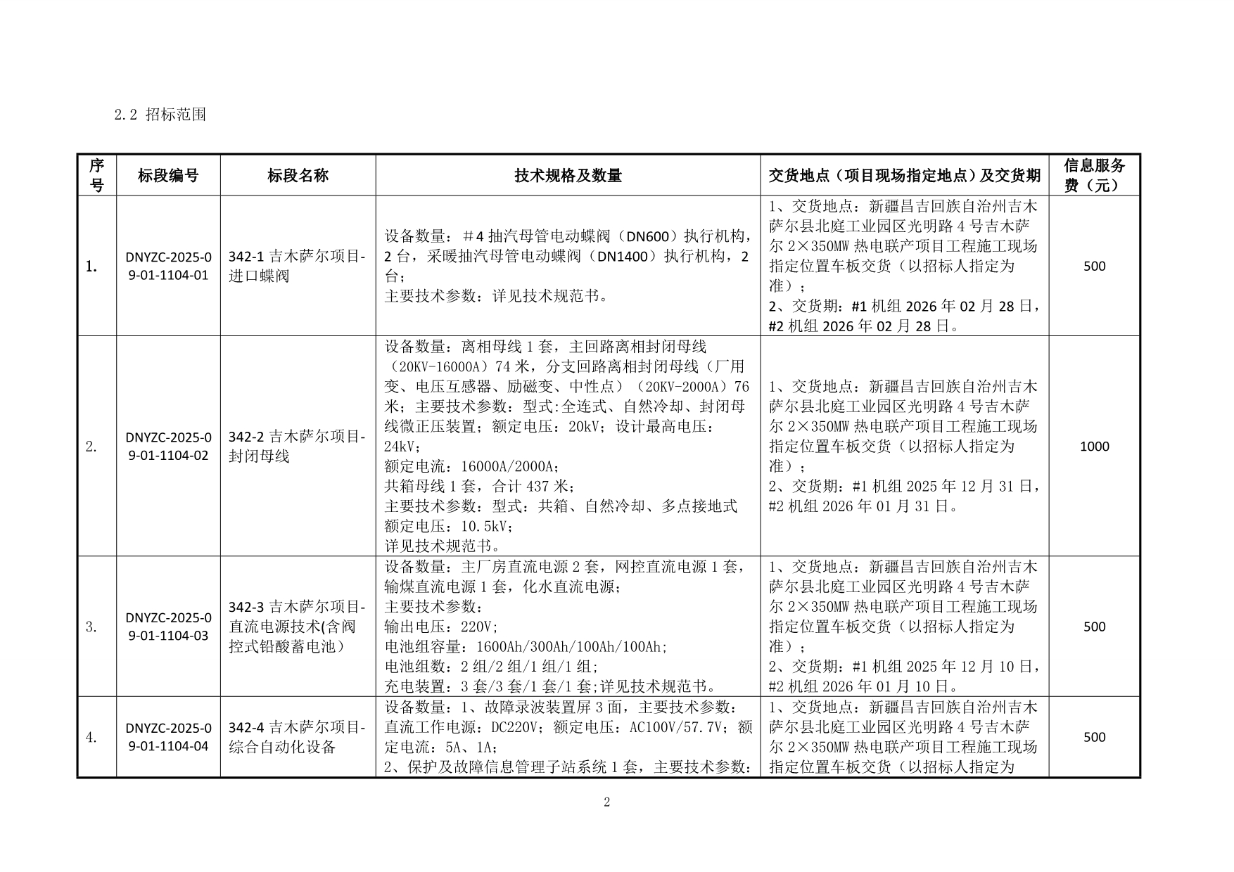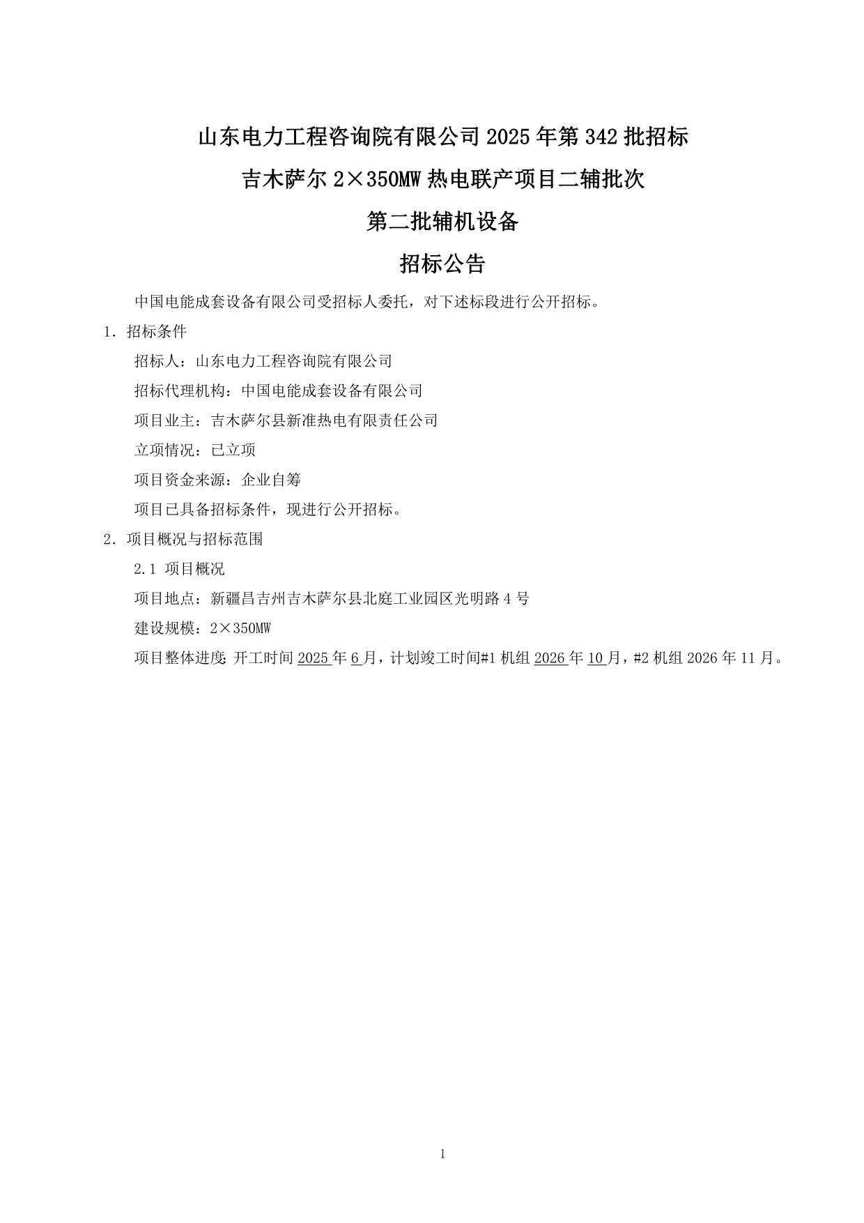 山東電力工程咨詢院有限公司 2025 年第 342 批招標吉木薩爾 2×350MW 熱電聯產項目二輔批次第二批輔機設備招標公告