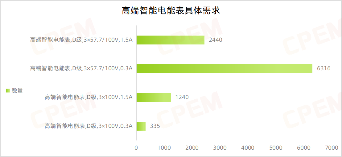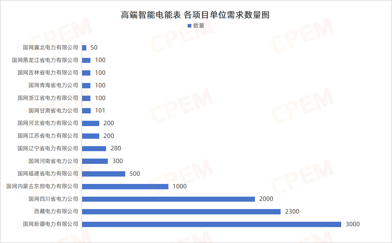 高端智能電能表招標項目單位共計15個,其中國國網新疆電力有限公司、西藏電力有限公司、國網四川省電力公司三個項目單位需求數量分列前三,高端智能電能表,D級,3×57.7/100V,0.3A該款產品的需求量最大,為6316臺。