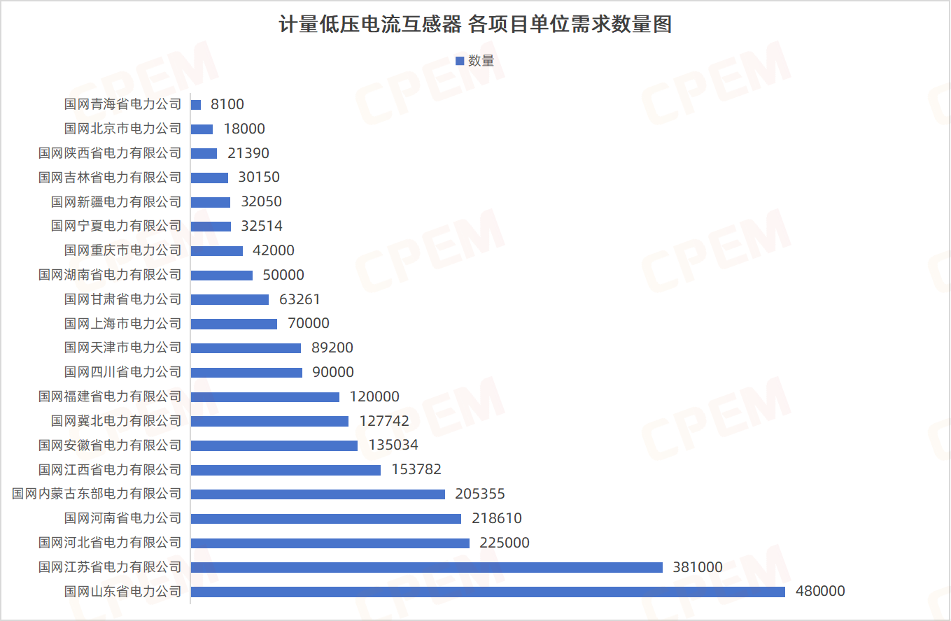 計量低壓電流互感器招標項目單位共計21個,其國國網山東省電力公司、國網江蘇省電力有限公司、國網河北省電力有限公司三個項目單位需求數量分列前三,計量低壓電流互感器,LMZ2D,200-500/5,0.2S該款產品的需求量最大,達953889臺。
