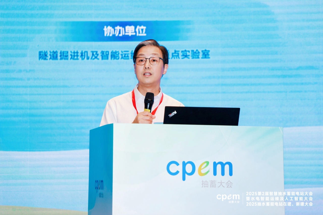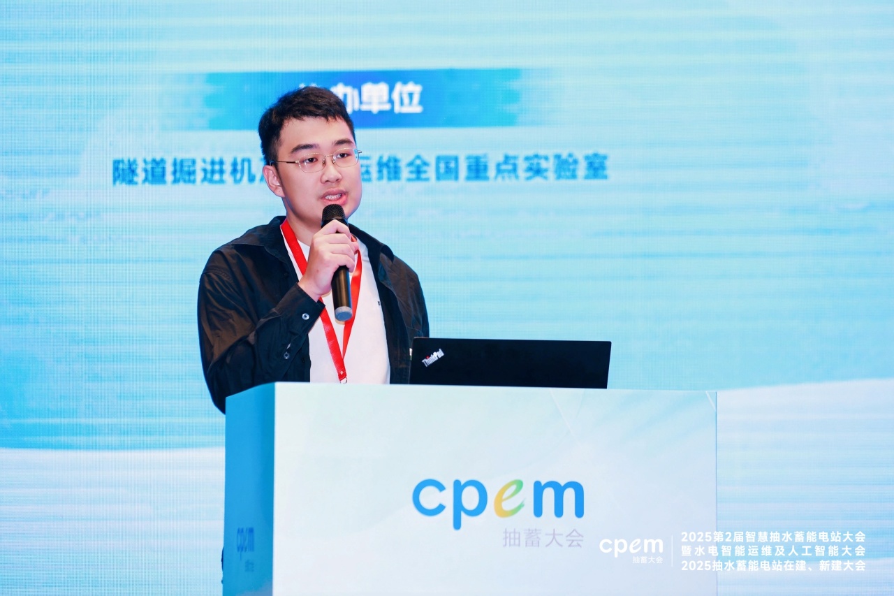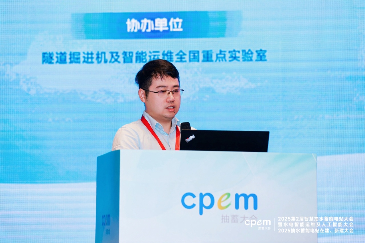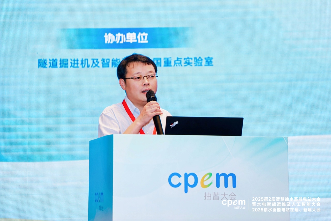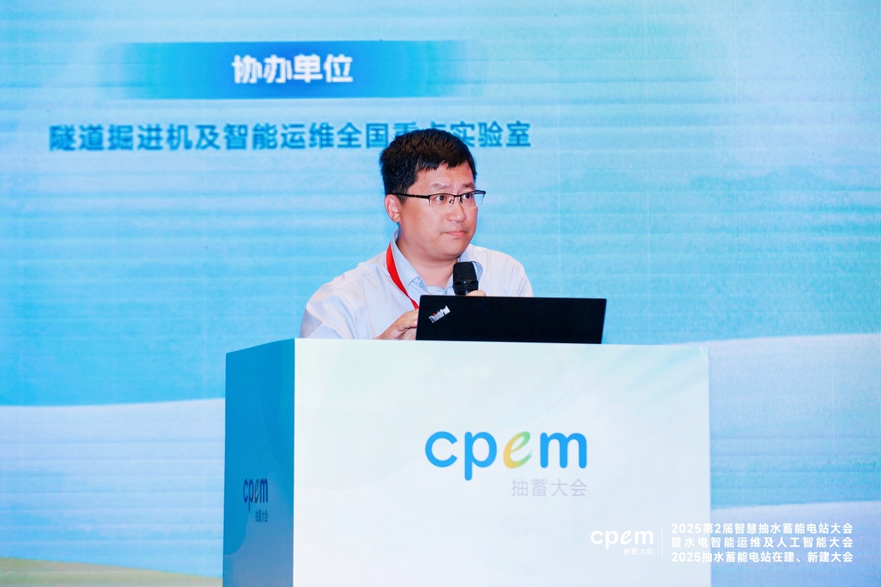 中國水利水電第六工程局有限公司科技與數字化部副主任汪云峰作《大型抽水蓄能電站上水庫及引水系統智能建造關鍵技術研究與應用》主題分享。