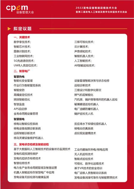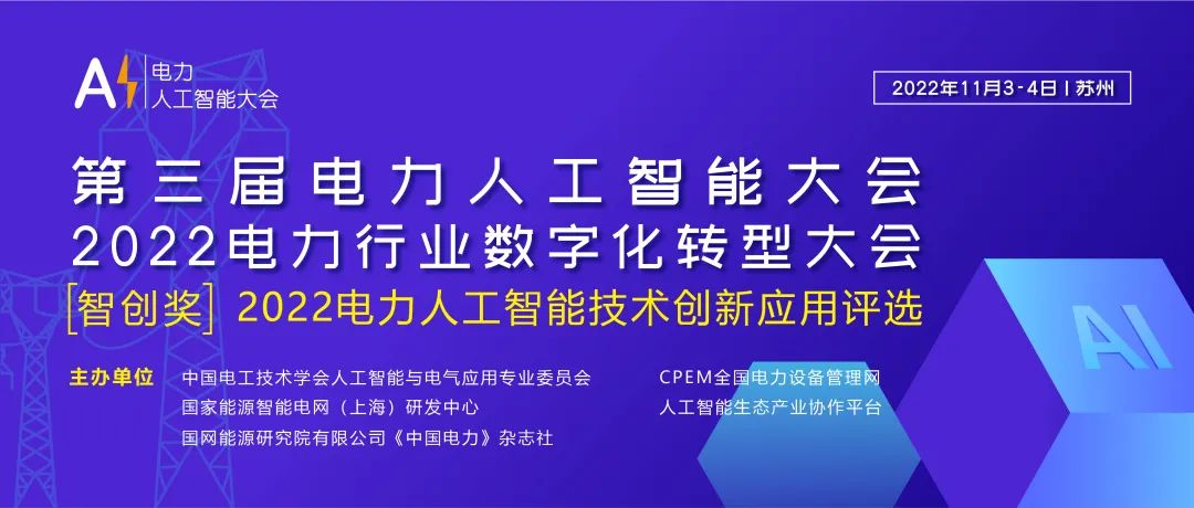 “2022第三屆電力人工智能大會暨2022電力行業數字化轉型大會”將于2022年11月3-4日在江蘇蘇州舉辦。大會由中國電工技術學會人工智能與電氣應用專業委員會、國家能源智能電網(上海)研發中心、CPEM全國電力設備管理網、國網能源研究院有限公司《中國電力》雜志社、人工智能生態產業協作平臺等單位聯合主辦,上海共燊信息科技有限公司無錫分公司、無錫共燊會展服務有限公司承辦。