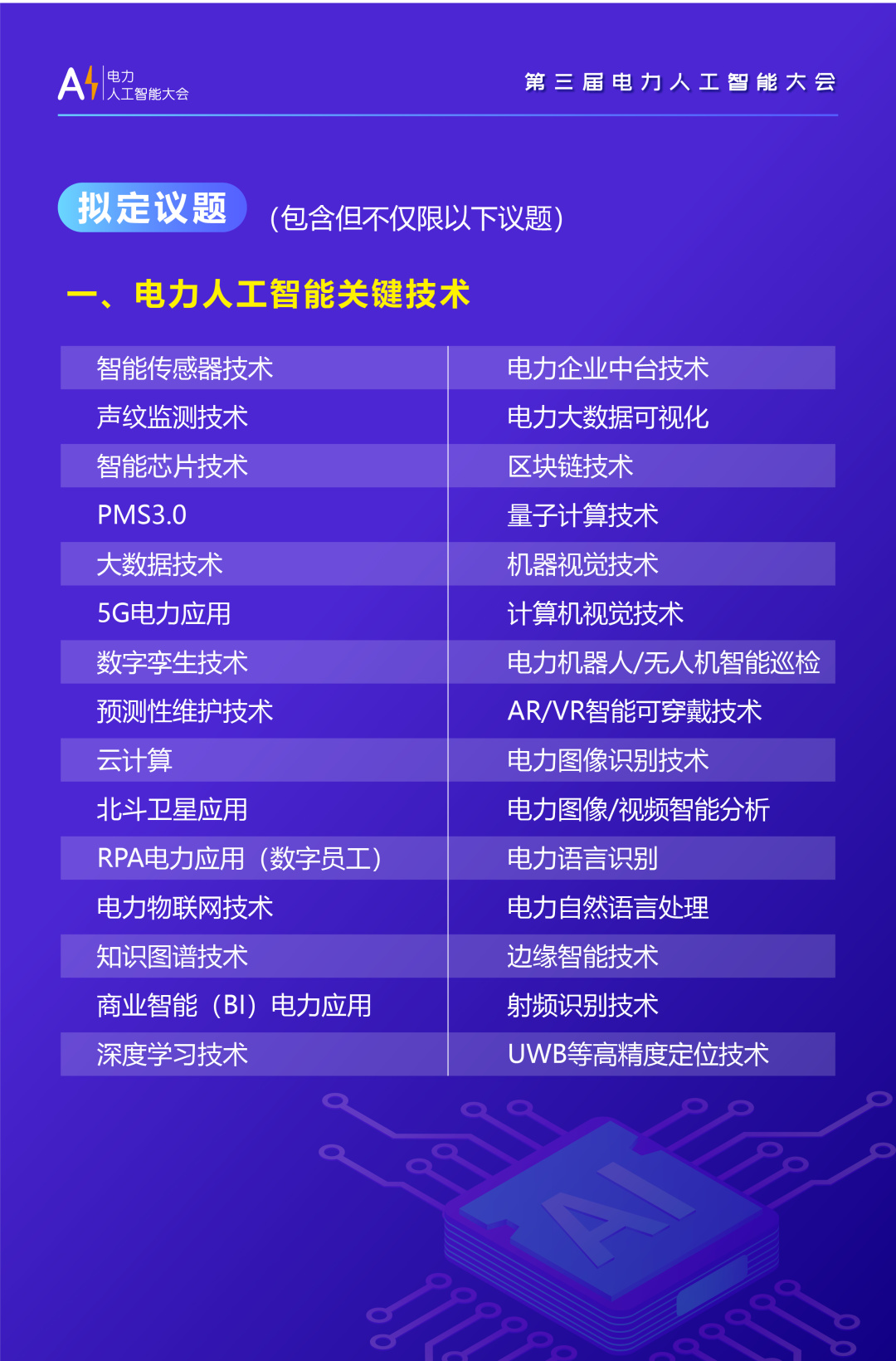 為進一步推動電力人工智能技術落地發展,落實關鍵技術等要點,更好地應對電力領域新的市場機遇與挑戰,為電力人工智能領域搭建一個了解政策、交流技術、洞悉市場以及企業開展戰略合作的前沿平臺,預計將有1000位行業代表出席。