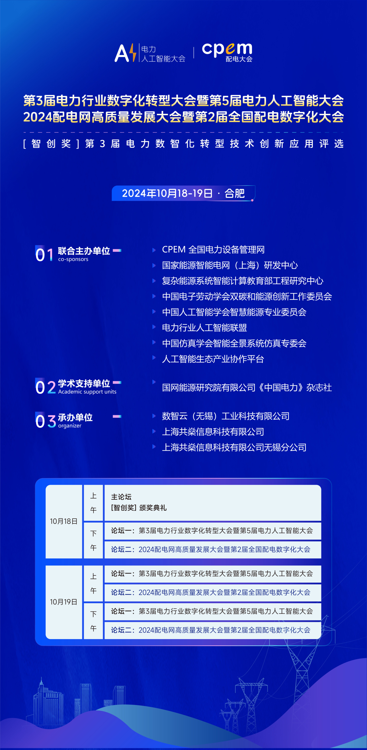 2024年10月18-19日,“第3屆電力行業數字化轉型大會暨第5屆電力人工智能大會”、“2024配電網高質量發展大會暨第2屆全國配電數字化大會”將在安徽省合肥市盛大召開!