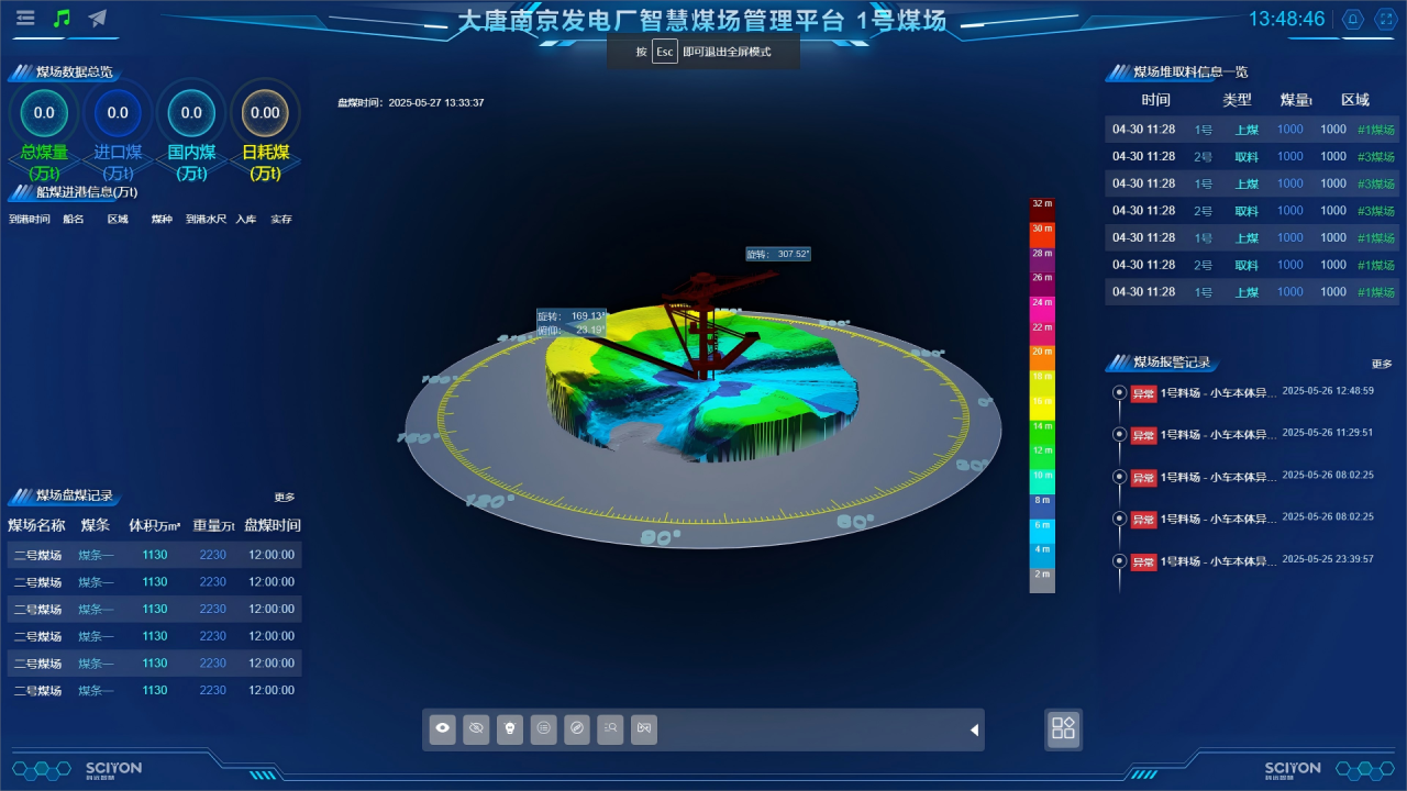 已率先上線運行! 實現煤場三維可視化、精準分層分區管理,并支持定時自動盤煤與手動盤煤,庫存管理邁入“透明時代”。
