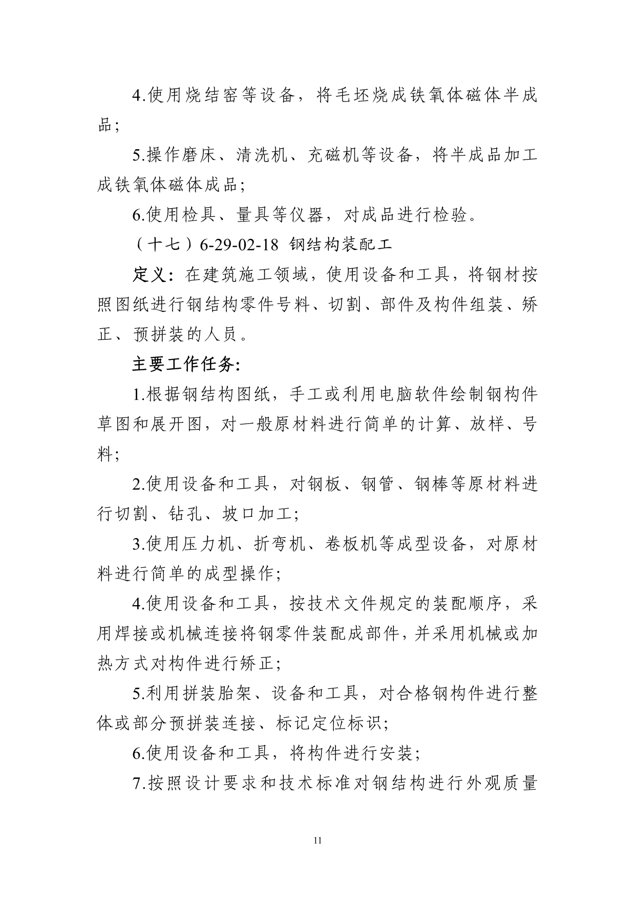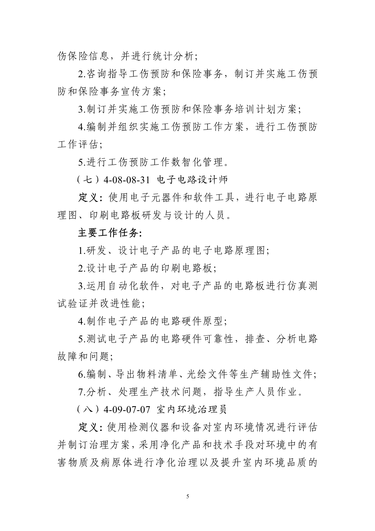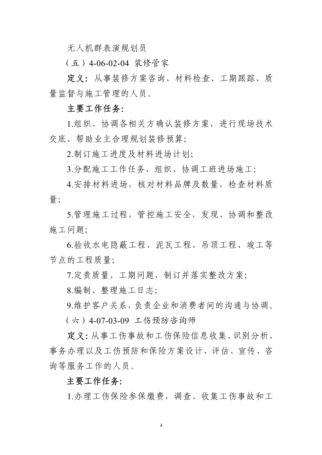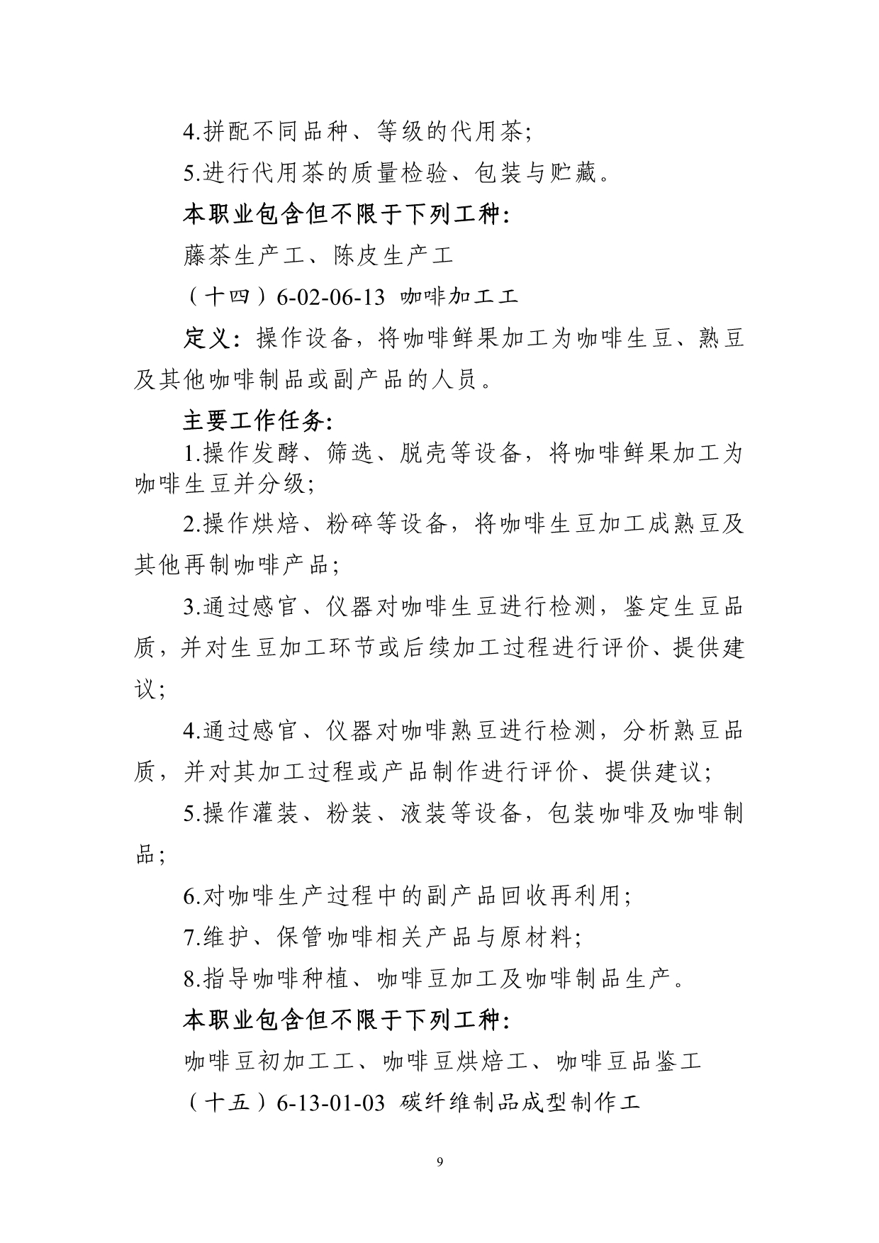 檢驗檢測管理工程技術人員、養老服務師、跨境電商運營管理師S、無人機群飛行規劃員、裝修管家、工傷預防咨詢師、電子電路設計師、室內環境治理員、家政服務經理人、電力可靠性管理員L、電力聚合運營員L/S、農村集體經濟經理人、代用茶加工工、咖啡加工工、碳纖維制品成型制作工、鐵氧體磁體制造工、鋼結構裝配工。(S表示數字職業,L表示綠色職業。)
