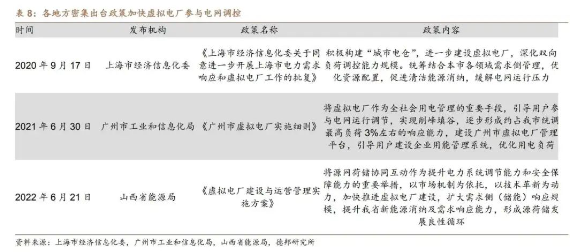 2022年3月發(fā)布的《“十四五”現代能源體系規(guī)劃》就指出,要推動儲能設施、虛擬電廠、用戶可中斷負荷等靈活性資源參與電力輔助服務。此外,北京/上海等多地的十四五規(guī)劃中也都點名提到發(fā)展和建設虛擬電廠。