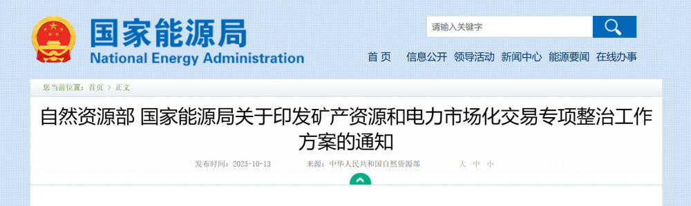 10月13日,自然資源部、國家能源局聯合印發《礦產資源和電力市場化交易專項整治工作方案》(以下簡稱《方案》)。