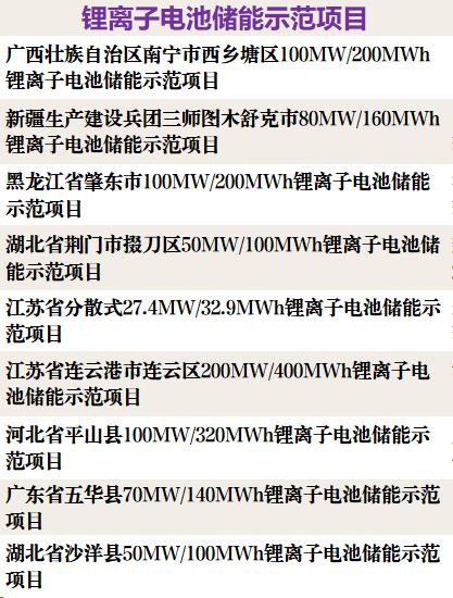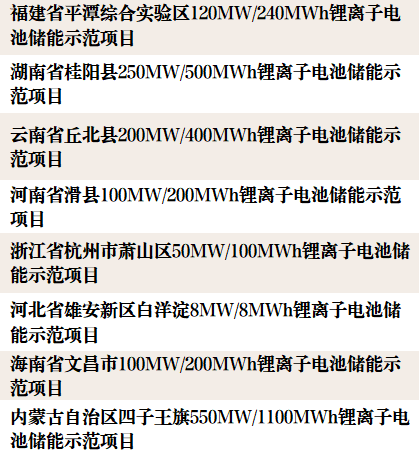 新型儲能試點示范項目名單