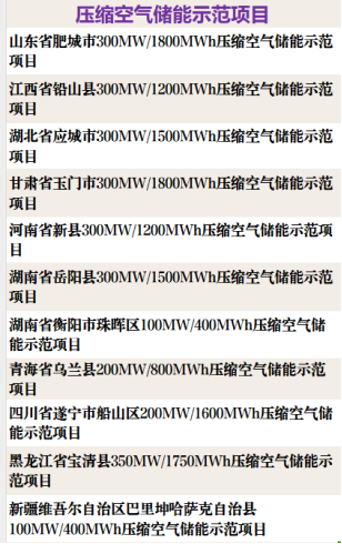 2024年1月17日,國家能源局在發布的公告中,宣布了將包括“山東省肥城市300MW/1800MWh壓縮空氣儲能示范項目”在內的56個項目列為新型儲能試點示范項目。