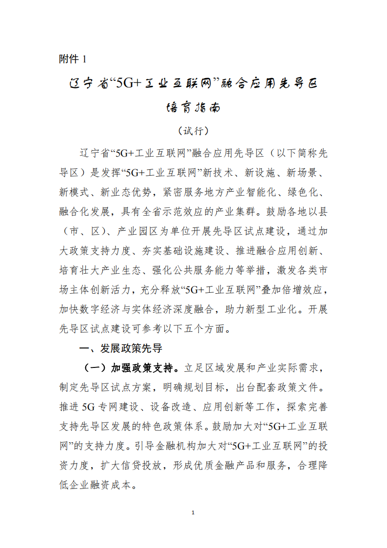 附件:1.遼寧省“5G+工業互聯網”融合應用先導區培育指南(試行)
