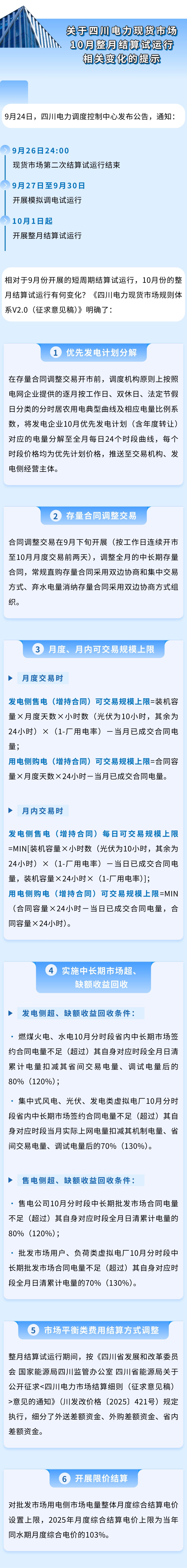 關于四川電力現貨市場10月整月結算試運行相關變化的提示