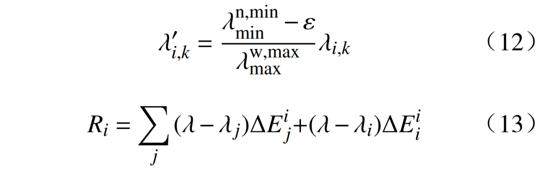 式中:分別為修改前后的報價;為報價最低的非棄水機組的第1段報價;為報價最高的棄水機組的最后一段報價;ε為一個較小的正數,用于報價調整,可由電力交易中心綜合考慮后決定;Ri為水電機組i的調蓄價值,用于描述梯級上游發電量通過影響下游發電能力為系統帶來的價值;j為電站i的下游電站;λ為邊際出清電價;為下游電站因電站i的調蓄作用增加的中標電量;式(13)右端第1項表示上游電站增發