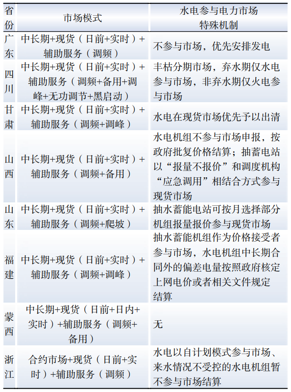 Table 6  Market mechanisms with hydropower participation in the first batch of power spot market pilot provinces in China