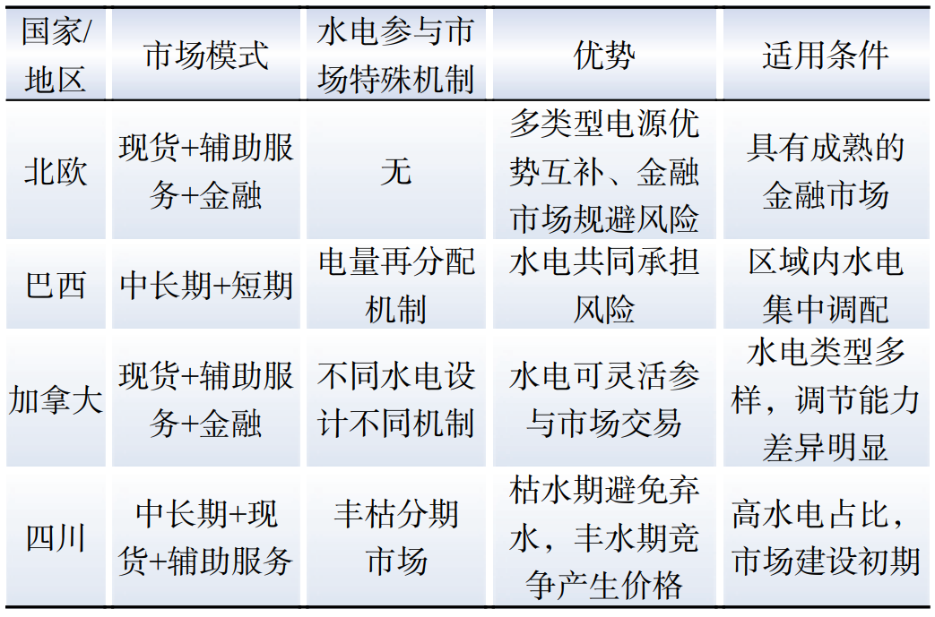 Table 5  Market mechanisms with hydropower participation in different countries / regions