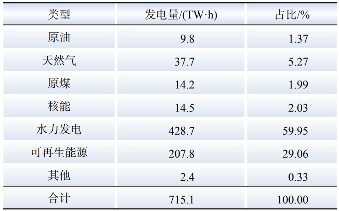水電是巴西的主要發電來源,據統計,2023年巴西總發電量715.1 TW·h,其中水電占比59.95%。巴西各類電源發電情況如表1所示。