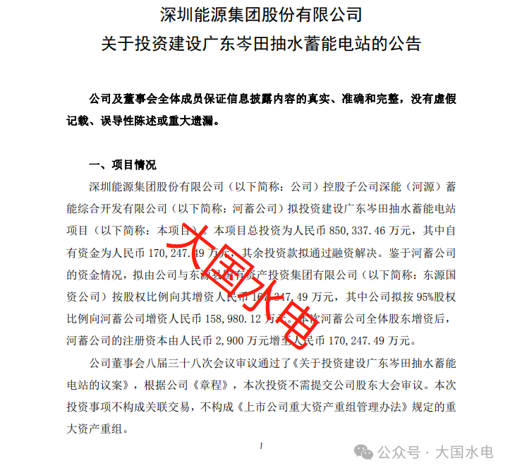 8月28日,深圳能源集團股份有限公司發布關于投資建設廣東岑田抽水蓄能電站的公告。