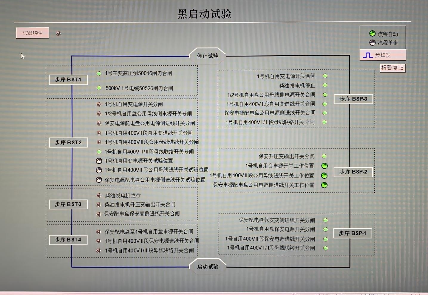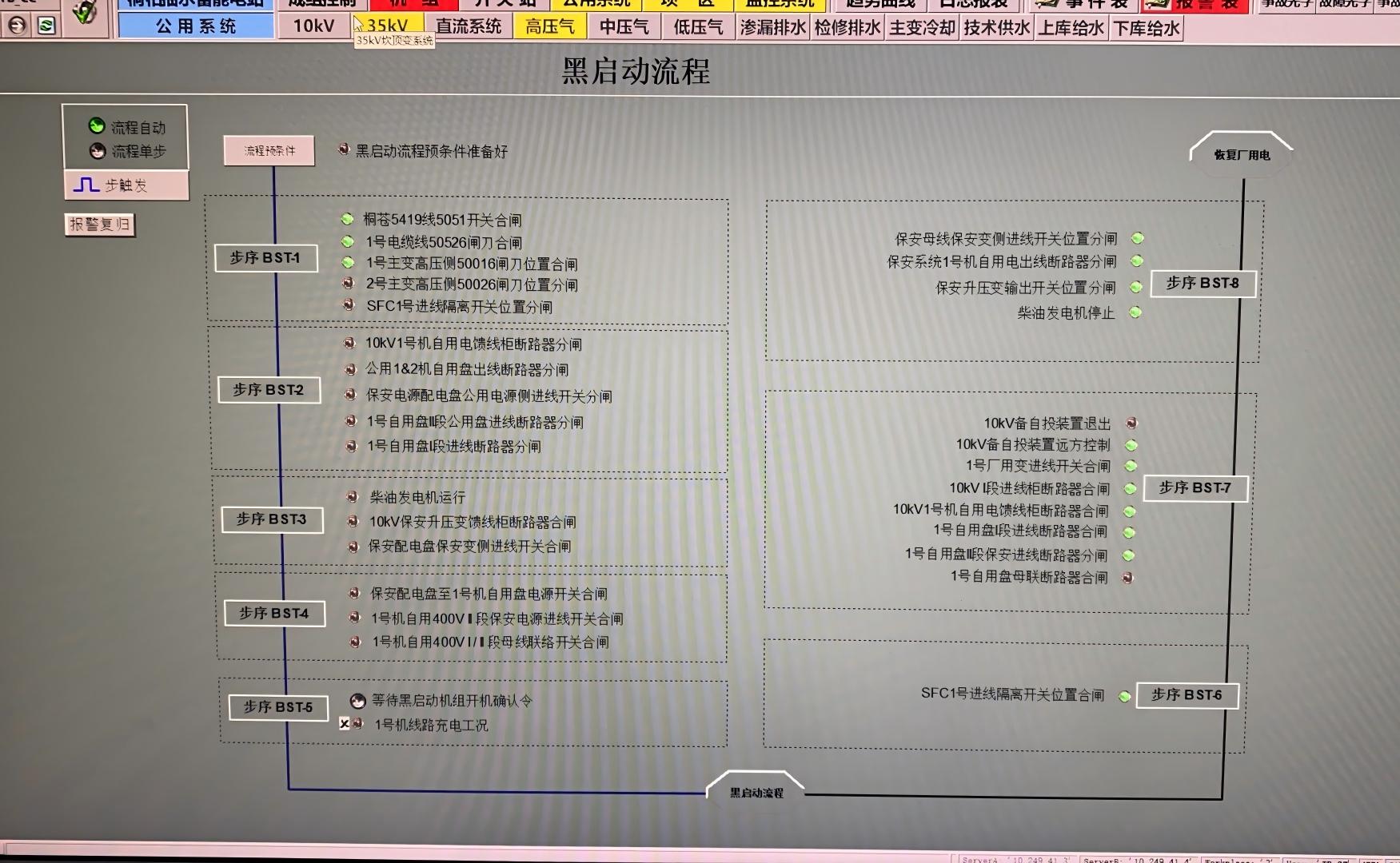 2.優化控制邏輯,采用一鍵啟動的模式:利用順控流程中的“線路充電”啟動模式,上位機直接下令,無需任何的人為干預,與傳統的操作方式相比大致節約50分鐘,真正發揮了電網事故時機組黑啟動的快速反應作用。