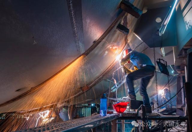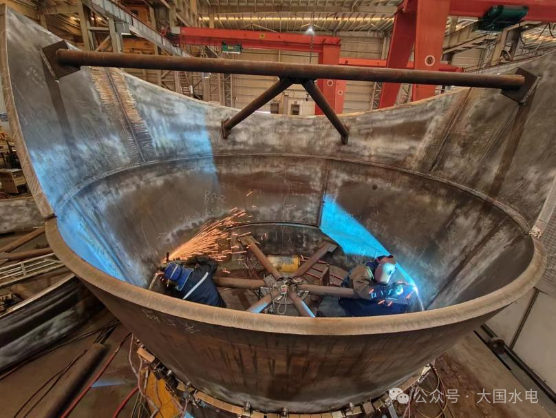 ▲白鶴灘水電站右岸主廠房16號機窩蝸殼焊接施工形象