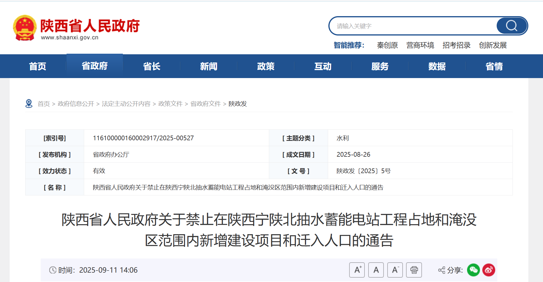 2025年9月11日,陜西省人民政府發布了《關于禁止在陜西寧陜北抽水蓄能電站工程占地和淹沒區范圍內新增建設項目和遷入人口的通告》,標志著這一總投資超百億元的重大能源基礎設施項目正式進入實質性建設前期階段。該通告旨在規范工程建設征地與移民安置工作,確保項目順利推進。