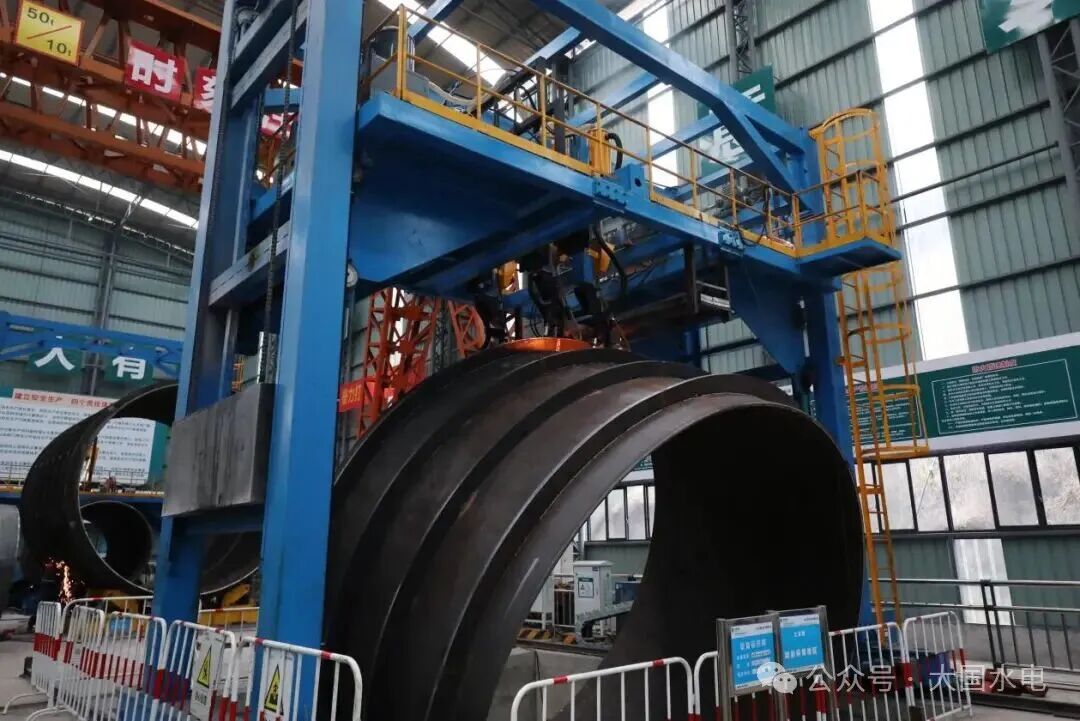 ▲國(guó)網(wǎng)新源縉云電站壓力鋼管加勁環(huán)自動(dòng)焊接設(shè)備。