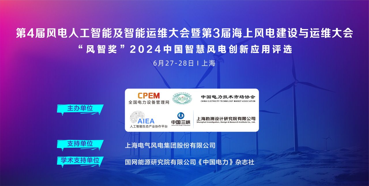 “風智獎”2024中國智慧風電創(chuàng)新應用評選頒獎典禮將于6月27日與“第4屆風電人工智能及智能運維大會暨第3屆海上風電建設與運維大會”同期在上海市舉辦。