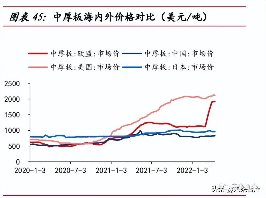 樁基無反傾銷稅限制,歐洲企業競爭力有限?,F階段樁基無反傾銷稅限制,參考 塔筒反傾銷稅的調查周期(約 10 年),未來 10 年有望成為樁基環節的出口黃金期。競爭對手方面,歐洲本土供應商的產能落后,歐洲本土樁基供應商產能有限,SIF、 EEW等四家主流供應商的年設計產能之和不足 600 根,且50%的產品直徑小于11米, 在歐洲風機大型化趨勢下,已難滿足大噸重以及大直徑的產品要求。塔筒出口受反傾銷稅影響。較低的反傾銷稅率能使國內塔筒企業在海外市場中擁 有更強的議價能力?,F階段,大金重工在歐盟地區的反傾銷稅最低為 7.2%,泰勝風能 在澳洲地區的反傾銷稅為零,出口優勢明顯。原材料價低造就競爭力。原材料價格方面,塔筒原材料主要有中厚板、法蘭等, 中厚板占原材料成本的占在 80%以上, 2022 年俄烏沖突,歐洲中厚板價格一度是我 國中厚板價格的兩倍,我國中厚板市場價長期低于國際市場,促使我國塔筒企業利潤 率高于海外企業。