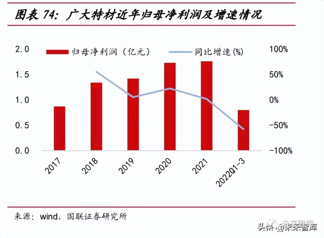 廣大特材于 2006 年成立,主營業務為高端特鋼材料和風電零部件。公司于 2019 年近進軍風電鑄件業務,截至 2022 年擁有大兆瓦風電鑄件產能 10-12 萬噸, 2023 年中期將形成 20 萬噸大兆瓦風電鑄件產能。2022 年 10 月公司可轉債項目 獲證監會批準,擬投資 11.5 億元建設 8.4 萬件風電齒輪箱核心精密零部件產能。2022 年前三季度公司營業收入同比有所上升 21.85%,但由于風電行業總體 需求減弱,再結合疫情反復、鋼材價格總體維持高位,前三季度歸母凈利潤同比下 降 57.91%。