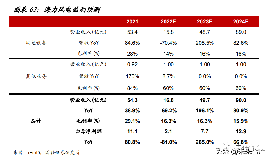 風電鑄件量利齊升,齒輪箱零部件放量在即。受益于產能擴產,以及海風裝機 需求回暖,公司風電鑄件的海風出貨占比有望提升,再疊加原材料價格回落,公司 風電鑄件業務盈利能力有望修復,預計 2022-23 年公司風電鑄件出貨 5/10 萬噸;公司的風電齒輪箱零部件設備已經與客戶進行小批量產品試制,預計 2023-24 年 齒輪箱零部件業務出貨 2/4 萬噸。我們預計 2022-24 年公司歸母凈利潤分別為 1.31/3.73/6.31 億元,同比25.69%/185.06%/69.03%;EPS 分別為 0.61/1.74/2.94 元/股。