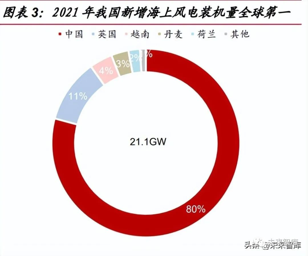 根據 GWEC(全球風能協會)披露,2021 年我國新增風電裝機容量為 47.6GW, 占全球總風電新增裝機容量的 51%。海上風電方面,海上風電新增裝機量與累計裝 機量均位列全球第一。
