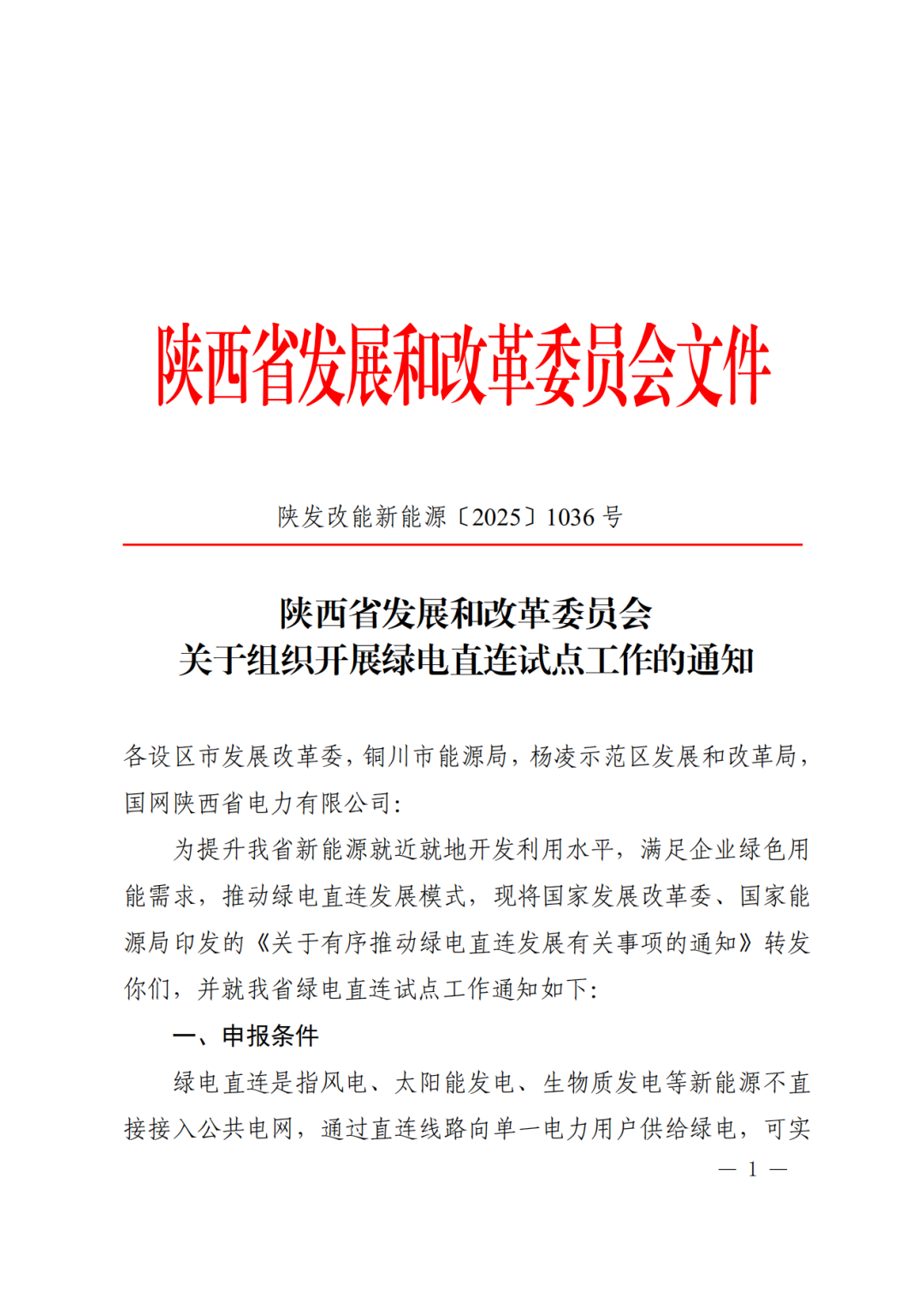 近日,陜西省發(fā)展和改革委員會發(fā)布《關(guān)于組織開展綠電直連試點工作的通知》(以下簡稱《通知》),組織綠電直連試點項目申報工作。