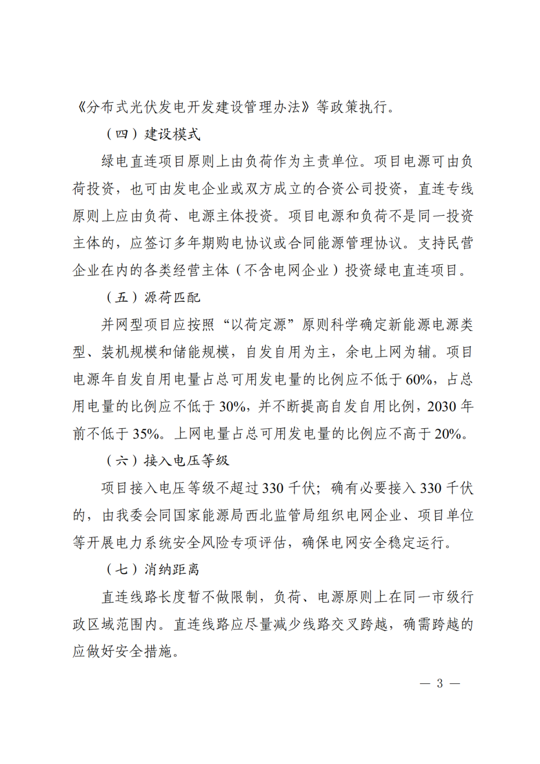 電源原則上為在建、新建項目,支持尚未開展電網(wǎng)接入工程建設(shè)或因新能源消納受限等原因無法并網(wǎng)的新能源項目,在履行相應(yīng)變更手續(xù)后開展綠電直連。直連電源為分布式光伏的,按照《分布式光伏發(fā)電開發(fā)建設(shè)管理辦法》等政策執(zhí)行。